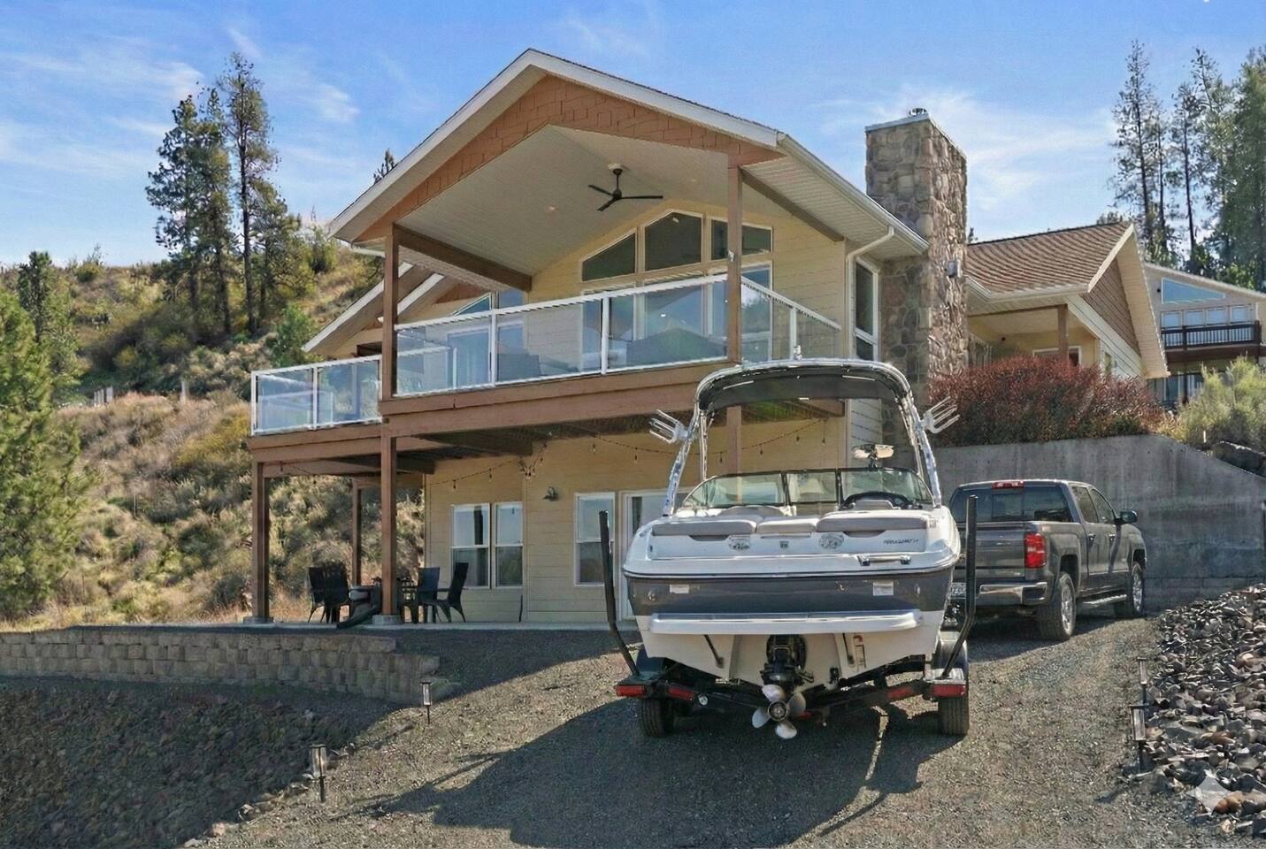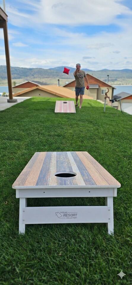 Relax and unwind in this 2-bedroom, 1.5-bath top-floor retreat featuring breathtaking views of Lake Roosevelt. Inside, you’ll find a cozy living area with a Wi-Fi TV, a large selection of Wii games, and plenty of board games. Each bedroom also has its own Wi-Fi TV. The large kitchen with double ovens gives you the flexibility to prepare gourmet meals or quick, easy dishes. Step outside to enjoy a large BBQ on the deck with plenty of seating to take in the lake views. The patio features a gas fire pit to stay warm on chilly evenings, and corn hole is available on the small grassy area beside the house. Located just a 0.25-mile walk to the trailhead for lake access and only 1.1 miles from Seven Bays Marina, the home offers easy parking for a truck and trailer—ideal for boaters or lake adventures. Please note: Guests will have access to the top floor only, but you will be the only guests staying at the property during your stay. The Space From the moment you walk in, the open floor plan welcomes you with modern furnishings and a warm, inviting vibe. The seamless flow between the living, dining, and kitchen areas makes it easy to gather and entertain. Each bedroom is designed for a restful night’s sleep, while the fully stocked kitchen is ready for your favorite meals. The private outdoor spaces are perfect for a morning coffee or evening glass of wine while soaking up the serene lake views.